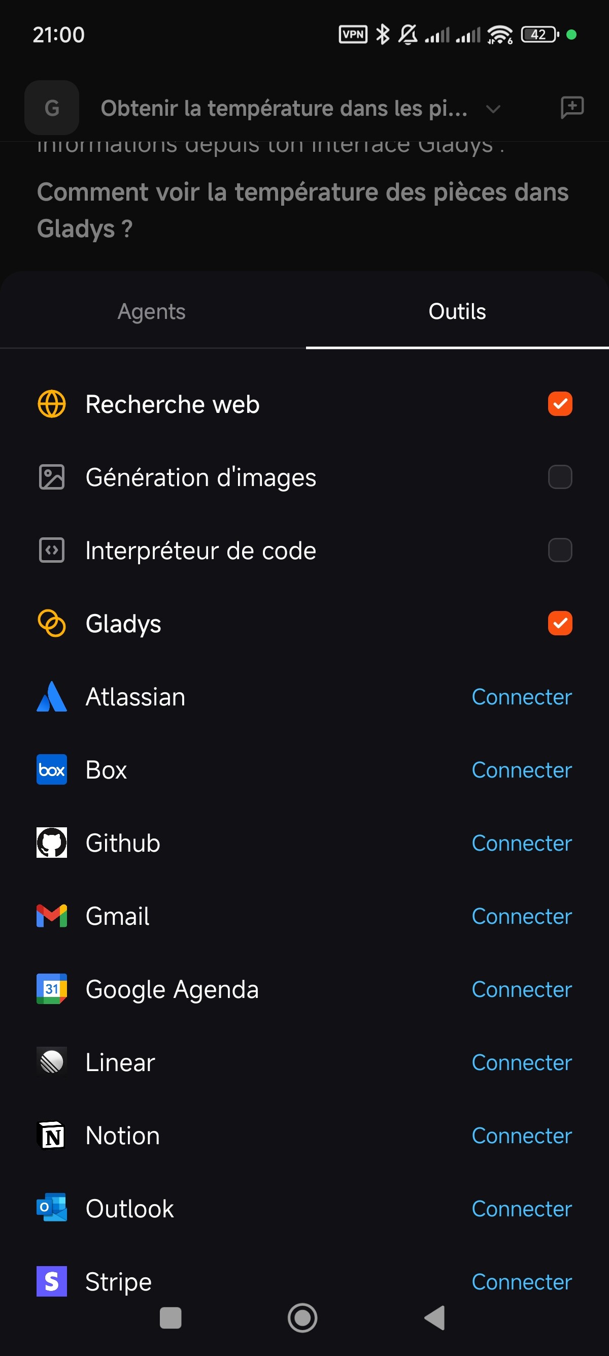Je suis très heureux d’annoncer aujourd’hui le formidable travail de @bertrandda : l’arrivée des agents IA dans Gladys !